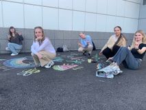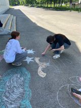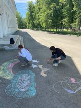 Девочки из групп ТД-1А, ТД-1Б и ТД-2Б в составе: Соболева Вероника, Коржавина Полина, Воробьева Таисия, Булатова Софья, Новикова София, Любимова Анастасия, Кийк Анна, Хасанова Мария, Лысикова Анастасия, Кузнецова Юлия, Крылова Дарья, Мажирина Елизавета, Сулимова Дарья, Кислицына Дарья, Ермакова Алёна, Шабалина Софья, нарисовали яркие, позитивные рисунки на асфальте!