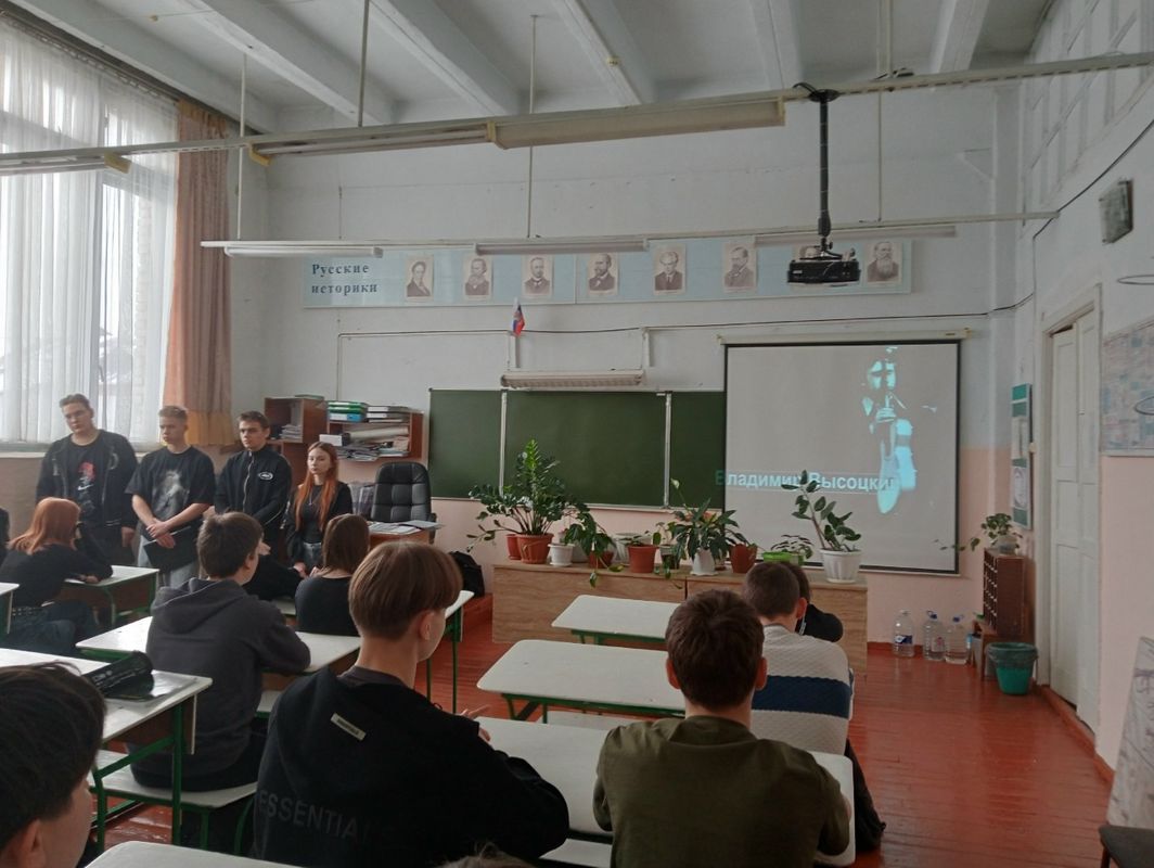 На встрече ребята узнали много интересного из биографии В.Высоцкого, прослушали, а также узнали историю создания таких песен, как «Мы вращаем Землю», «Песня летчика», «Братские могилы», «Он не вернулся из боя», «Сыновья уходят в бой», «Штрафные батальоны» и многое другое.