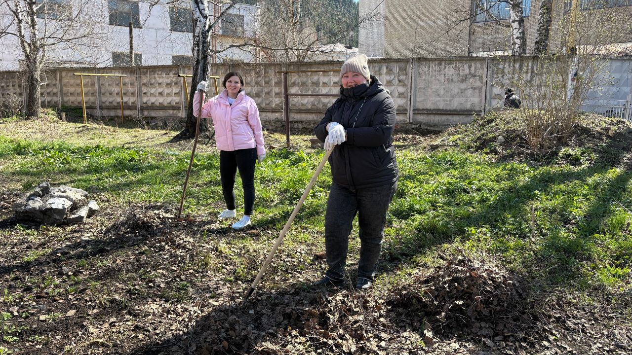 Абсолютно все сотрудники учебного заведения вышли на субботник. Вооружившись инвентарём, с энтузиазмом взялись за работу: собирали прошлогодний мусор, очищали дорожки от сухих веток и листьев.