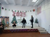 Постановку сопровождали песни в стиле Rock, яркие и разнообразные костюмы, а главными гостями на празднике, конечно же были Дед Мороз и Снегурочка!